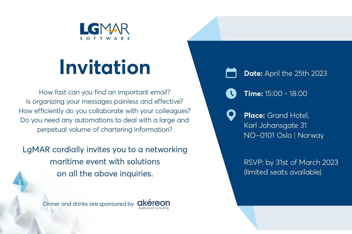 For your personal invitation please contact LgMAR here, via LinkedIn, email or tel: +30 211 770 8711